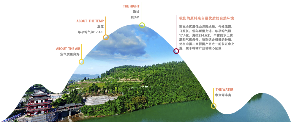 四川位于西南腹地,地處長江上游,東臨重慶,南接云貴,西銜西藏,北連陜甘,境內(nèi)秀麗,物產(chǎn)豐富,是全國的農(nóng)產(chǎn)品供應(yīng)大省,自古被譽為天府之國,南充是川東北中心城市,位于嘉陵江中游,是古老嘉陵江畔的明珠,久負盛名的水果之洲,南充屬全區(qū)屬低山丘陵地貌,氣候溫濕,日照長,常年雨量充沛,年平均氣溫17.4度,海拔824.6米,豐富的水土資源和氣候條件,特別適合柑橘的種植,處在中國三大柑橘產(chǎn)區(qū)之一的長江中上游,屬于柑橘產(chǎn)業(yè)帶核心區(qū)域